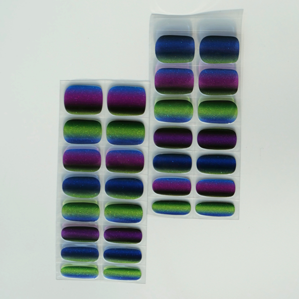 Lazdele atstumkite odeles. Naudodami nuriebalinimo servetėlę nuvalykite nagų plokšteles. Parinkite lipduką pagal nagų plokštelę. Rinkitės šiek tiek siauresnę nei jūsų nagų plokštelė. Nuplėškite apsauginę plėvelę. Paimkite lipduką ir prilipinkite prie nago plokštelės (neklijuokite lipduko ant odelės). Lipduko kraštus prispauskite naudodami lazdelę. Nereikalingą lipduko dalį nukirpkite. Prilipinę visus lipdukus sutvirtinkite juos apšviesdami specialia LED lempa. Lieka tik dilde nušlifuoti nukirptus kraštelius ir mėgautis rezultatu. Video instrukcija