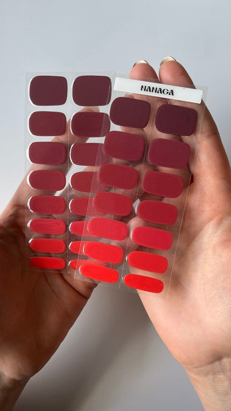 Lazdele atstumkite odeles. Naudodami nuriebalinimo servetėlę nuvalykite nagų plokšteles. Parinkite lipduką pagal nagų plokštelę. Rinkitės šiek tiek siauresnę nei jūsų nagų plokštelė. Nuplėškite apsauginę plėvelę. Paimkite lipduką ir prilipinkite prie nago plokštelės (neklijuokite lipduko ant odelės). Lipduko kraštus prispauskite naudodami lazdelę. Nereikalingą lipduko dalį nukirpkite. Prilipinę visus lipdukus sutvirtinkite juos apšviesdami specialia LED lempa. Lieka tik dilde nušlifuoti nukirptus kraštelius ir mėgautis rezultatu. Video instrukcija
