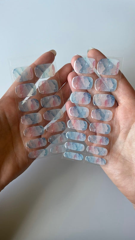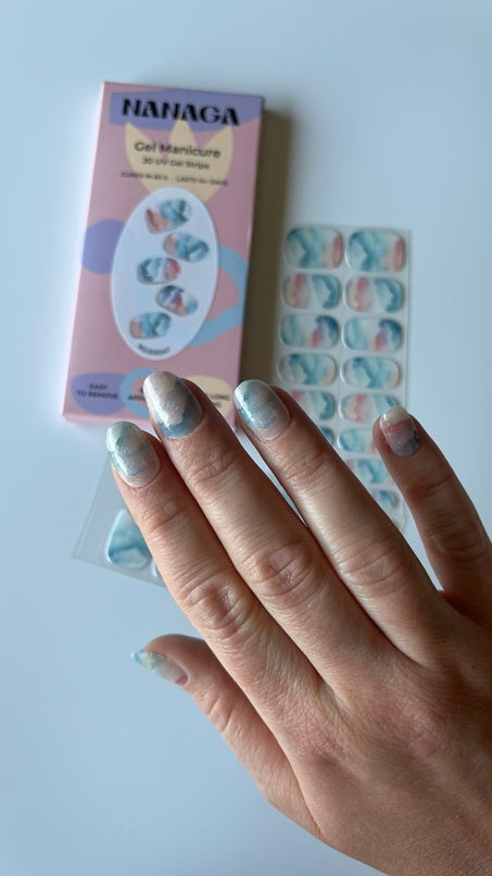 Lazdele atstumkite odeles. Naudodami nuriebalinimo servetėlę nuvalykite nagų plokšteles. Parinkite lipduką pagal nagų plokštelę. Rinkitės šiek tiek siauresnę nei jūsų nagų plokštelė. Nuplėškite apsauginę plėvelę. Paimkite lipduką ir prilipinkite prie nago plokštelės (neklijuokite lipduko ant odelės). Lipduko kraštus prispauskite naudodami lazdelę. Nereikalingą lipduko dalį nukirpkite. Prilipinę visus lipdukus sutvirtinkite juos apšviesdami specialia LED lempa. Lieka tik dilde nušlifuoti nukirptus kraštelius ir mėgautis rezultatu. Video instrukcija