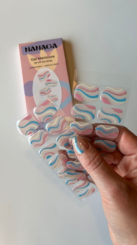Lazdele atstumkite odeles. Naudodami nuriebalinimo servetėlę nuvalykite nagų plokšteles. Parinkite lipduką pagal nagų plokštelę. Rinkitės šiek tiek siauresnę nei jūsų nagų plokštelė. Nuplėškite apsauginę plėvelę. Paimkite lipduką ir prilipinkite prie nago plokštelės (neklijuokite lipduko ant odelės). Lipduko kraštus prispauskite naudodami lazdelę. Nereikalingą lipduko dalį nukirpkite. Prilipinę visus lipdukus sutvirtinkite juos apšviesdami specialia LED lempa. Lieka tik dilde nušlifuoti nukirptus kraštelius ir mėgautis rezultatu. Video instrukcija